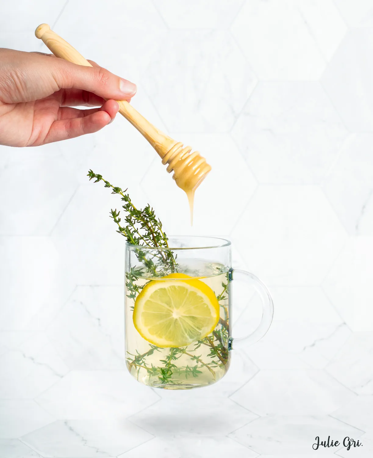Le citron quant à lui est riche en vitamines C et antioxydants, pour renforcer les bénéfices du thym et du miel. Choisissez un citron bio pour éviter d’avoir des insecticides dans votre tisane magique.