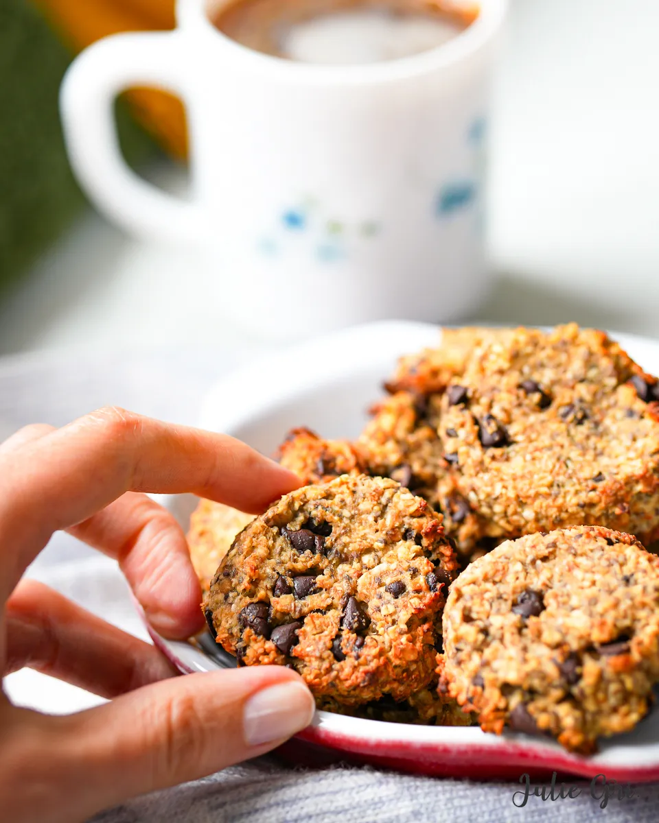 Je vous propose une de cookies healthy à la banane, flocons d’avoine et chocolat. Cette recette est vegan, elle est sans sucre, ni beurre, ni farine… et ultra rapide à préparer. Les cookies sont croustillants à l’extérieur, moelleux à l’intérieur, gourmands, et apportent à votre organisme plein de bonnes choses.