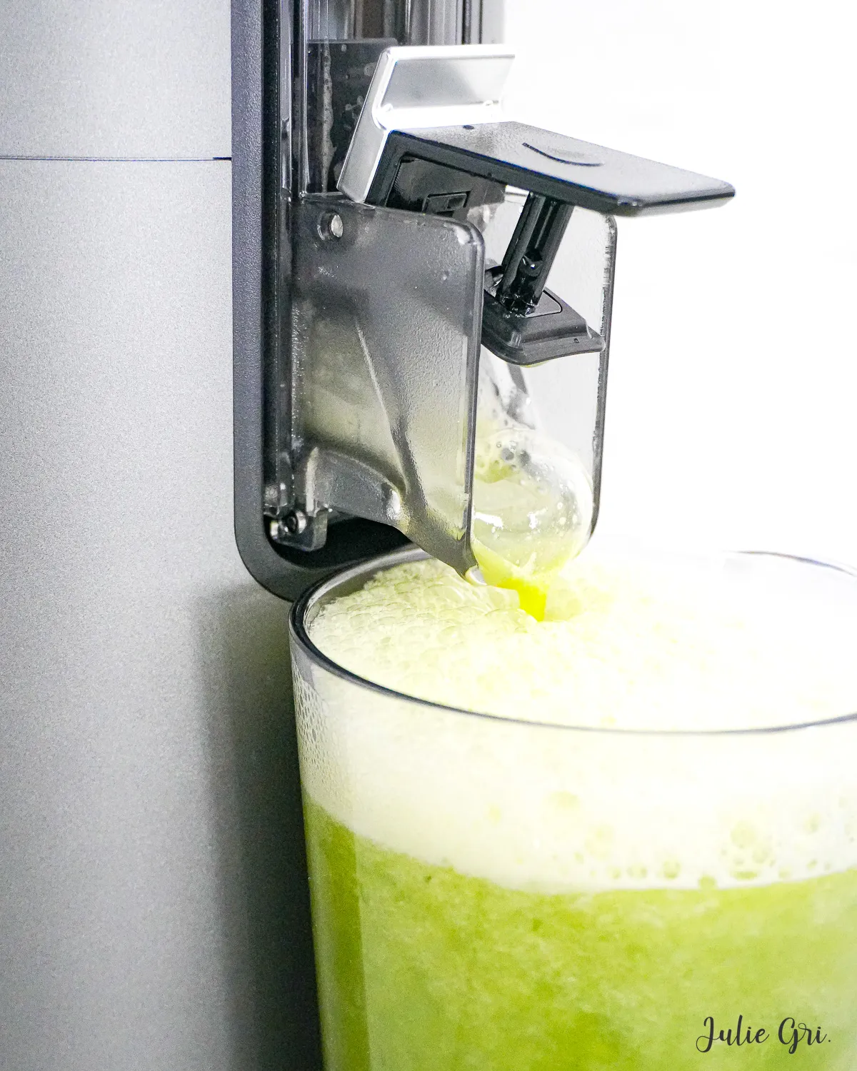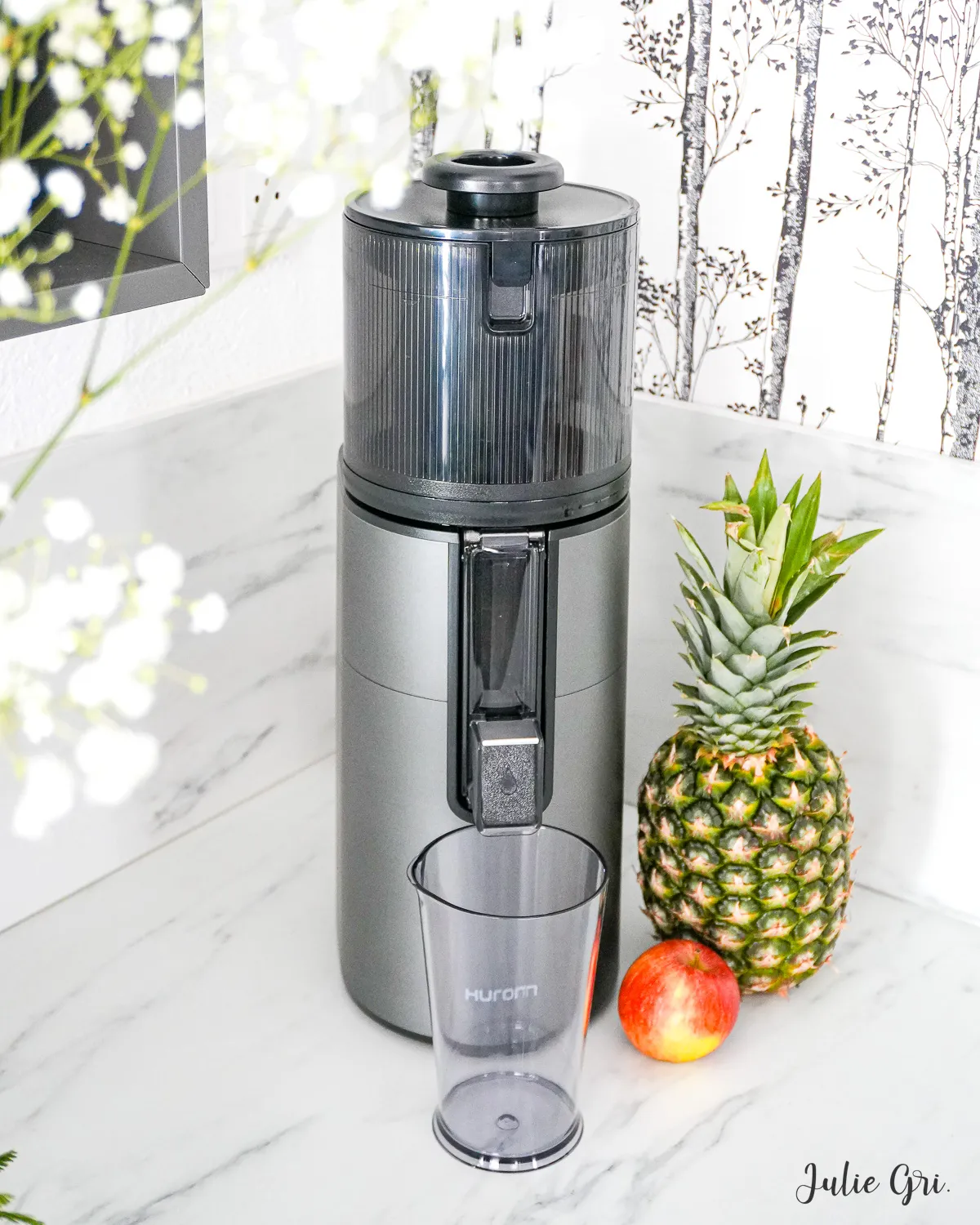 Le Hurom H400 a un système d’extraction vertical sans filtre, ce qui signifie que vous allez avoir un peu de pulpe ! Pour ma part, je ne trouve pas ça gênant mais je trouve important d’en parler pour ceux qui détestent vraiment la pulpe.