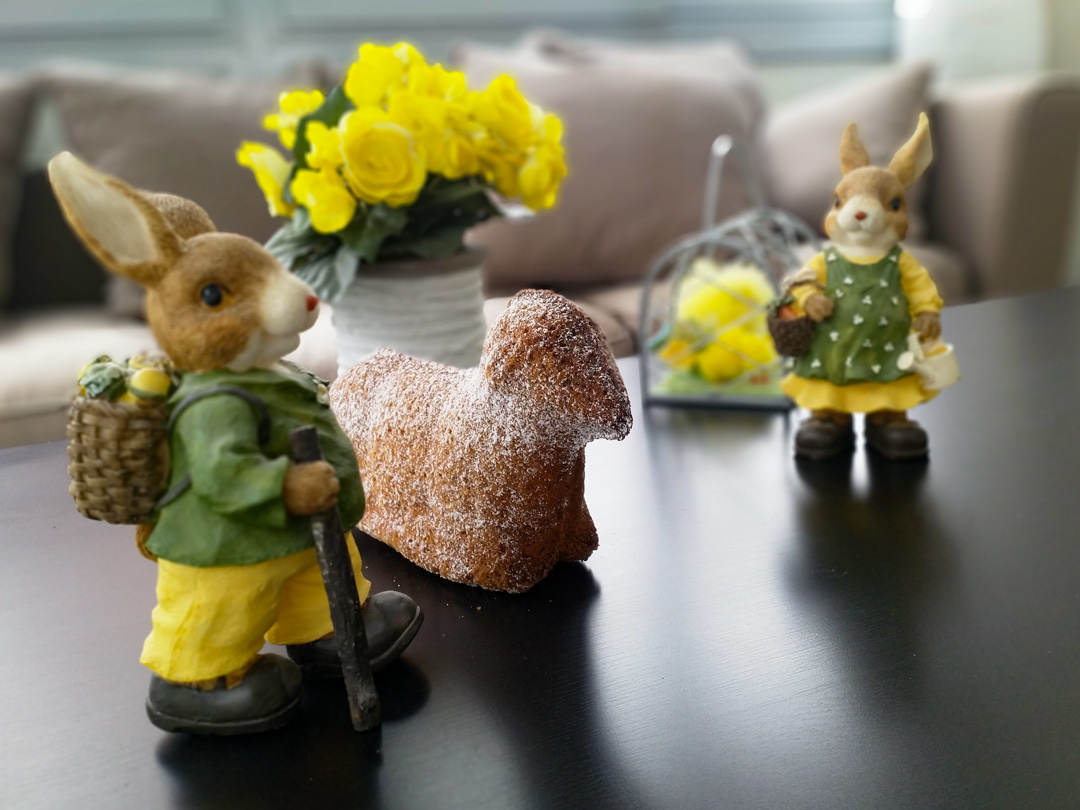 A la période de Pâques, on découvre souvent en Alsace ce petit agneau appelé Lammele. La tradition provient des chrétiens qui partageaient un agneau au repas de Pâques. La tradition du Lammele (petit agneau pascal en génoise) est elle plus récente, elle daterait du XVIème siècle. Autrefois, le carême (période de jeûne et d’abstinence d’une quarantaine de jours avant Pâques) était plus respecté qu’aujourd’hui, et les fidèles ne mangeaient pas d’œufs à cette période. Les ménagères et les boulangers devaient utiliser la grande quantité d’oeufs accumulés lors de cette période. Ils le faisaient notamment en réalisant et en offrant des Lammele en Alsace, les autres oeufs étaient décorés.